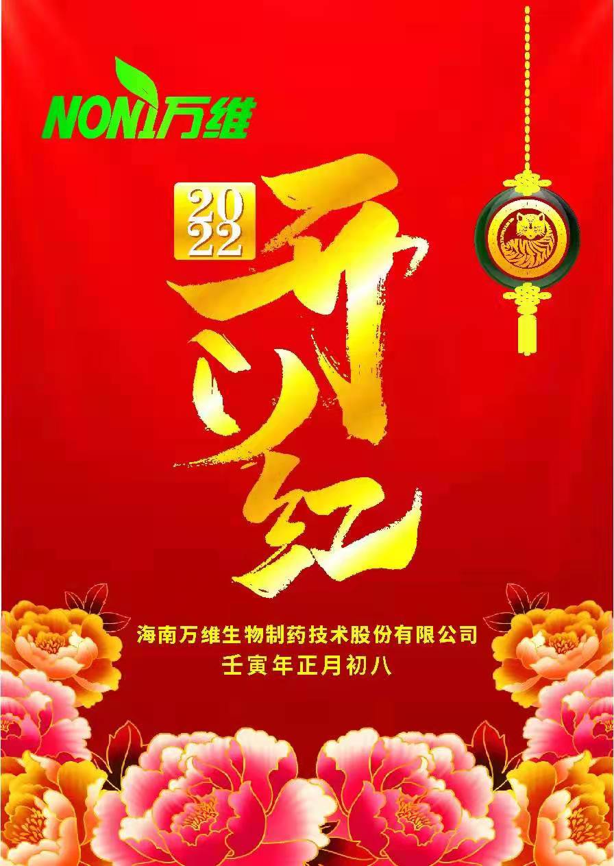 壬寅虎年正月初八,萬維生物開工了!新年新氣象,萬維人將乘著虎虎生風(fēng)的虎氣,踔厲奮發(fā),篤行不怠,博出虎年新精彩!