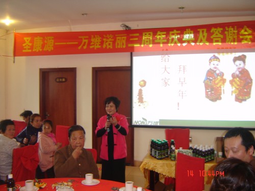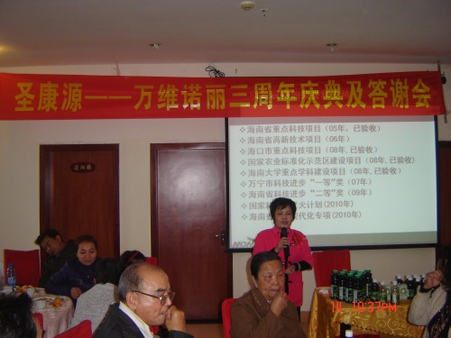 2011年01月15日,海南“萬維1號(hào)”諾麗產(chǎn)品海南總代理 “圣康源”公司在海鋼大酒店成功舉辦三周年慶典及答謝會(huì)。會(huì)上,圣康源公司總經(jīng)理馮曼影女士首先向新老會(huì)員就2010年的工作情況作了詳盡的報(bào)告,在與大家一起分享成功喜悅的同時(shí)對(duì)2011年的工作進(jìn)行了美好的展望。