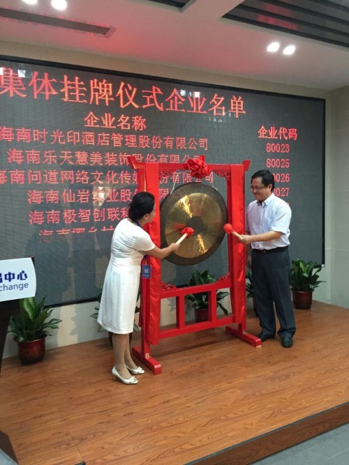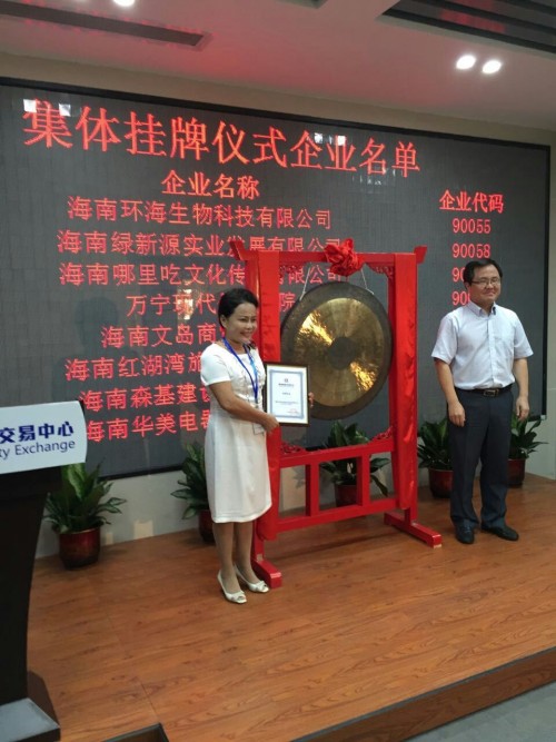 海南萬維參加海股交中心的掛牌敲鑼儀式