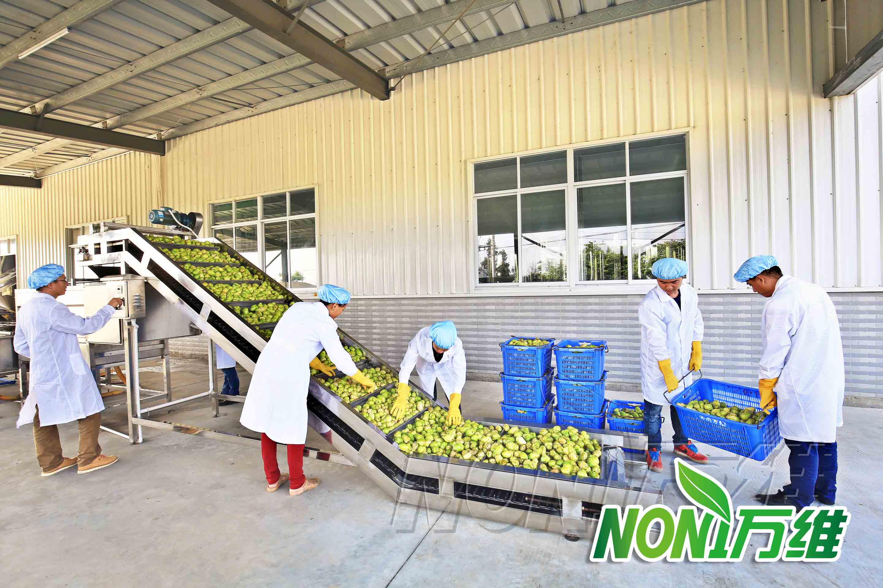 萬維諾麗加工廠是海南萬維旗下的現(xiàn)代化加工廠,5000m2現(xiàn)代化標(biāo)準(zhǔn)廠房,擁有全自動(dòng)諾麗鮮果清洗風(fēng)干傳輸一體化生產(chǎn)線,全封閉不銹鋼諾麗發(fā)酵生產(chǎn)線,多功能諾麗產(chǎn)品灌裝生產(chǎn)線和諾麗干果生產(chǎn)線,可年生產(chǎn)諾麗酵素2500噸。